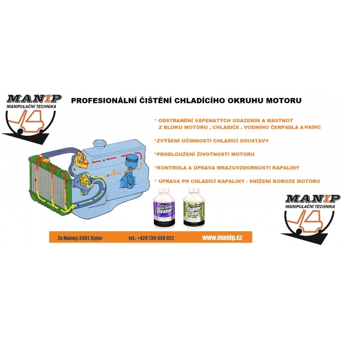 Výplach chladícího systému, odstranění oxidantů, tuků a dalších úsad. Odstranění 100 % staré kapaliny, naplnění novou. Aditivace nové kapaliny na excelentní oxidační stabilitu, ochranu a životnost.